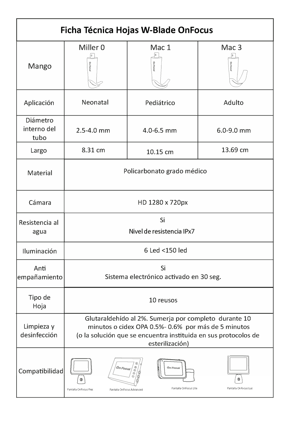 Hoja Miller #0 para pacientes neonatales de Policarbonato grado médico