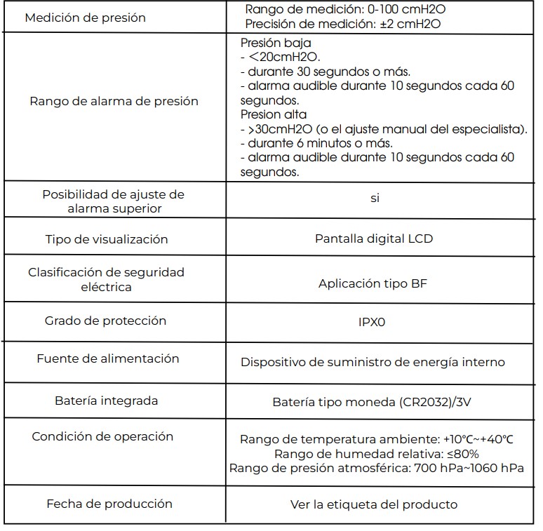 -Precisión de medición: +2 cmH2O